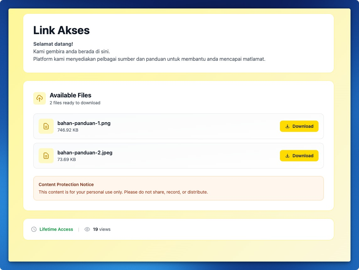 Pembeli boleh klik butang tersebut untuk mengakses pautan Protected Content, dan sistem akan meminta pengesahan OTP sebelum kandungan dapat dilihat.